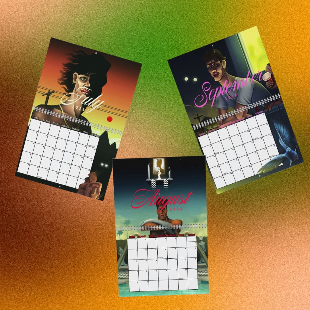 Last summer, I engaged with a collective of artists to assist in the launch of Left Field Good. Left Field Goods celebrates LGBTQ makers, designers, and artists who turn resistance into beauty, joy, and the kind of cool shit your home and wardrobe will benefit from. Every purchase helps fund queer creativity, put money directly into queer pockets, and sends a portion of our profits back into LGBTQ+ charities. I still have yet to put up my own collection on the site (in the works!), but it’s been great supporting the artists involved with design and logistics. If you’ve got a friend’s birthday coming up, or you just feel like supporting some very cool LGBTQ+ creatives, give it a look. I’m especially obsessed with Brandan Ray Leathhead’s 2026 calendar. So good.